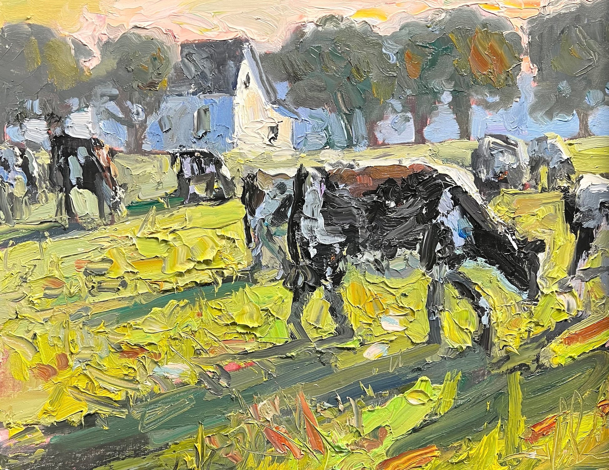 I just love cows and Indiana farms. I hope you love this painting as much as I do! This original oil, with its rich color and thick impasto, will bring warmth and charm to any decor.